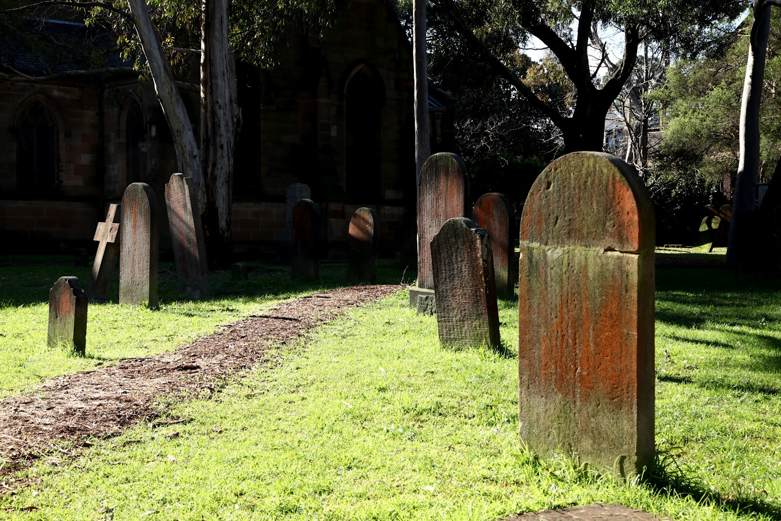The graveyard surrounding St Stephen's Anglican Church in Newtown is also known as the Camperdown Cemetery, even though it is just a small portion of the original Camperdown Cemetery, established in the 1840s, and the recipient of some of the removals from the Devonshire Street Cemetery when that cemetery closed in about 1900. On the map down below, the entire park greensward was the original Camperdown Cemetery, but in 1938 everything outside the sandstone walls of St Stephen's was removed, and most ungraciously at that. Headstones are laid along the inside of the sandstone walls to this day. Many of the remains ... remained; unless individual families wished to reinter their ancestors in either Waverley Cemetery, Botany Cemetery, or Rookwood Necropolis. |